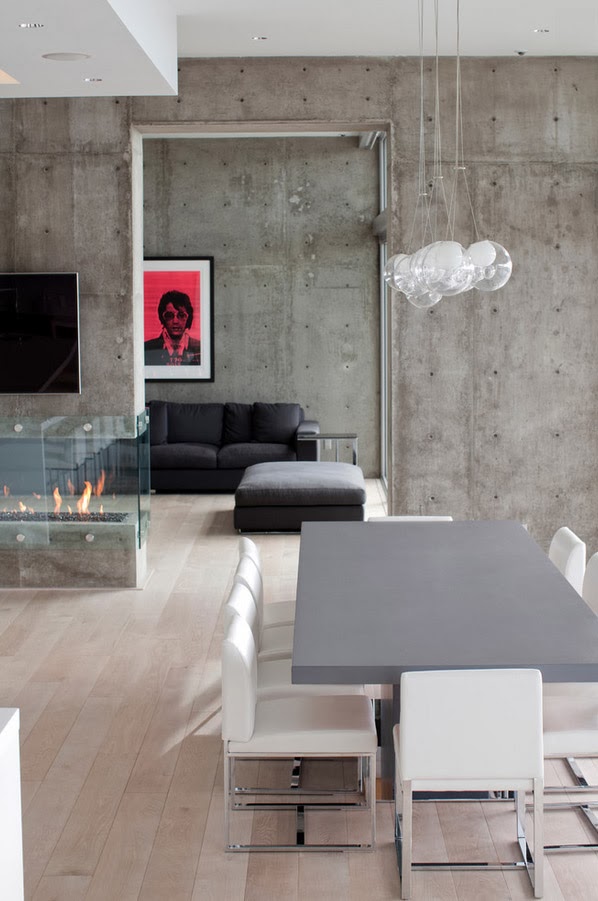 Может показаться, что имитация под бетонирование — слишком радикальный шаг, но обратите внимание на фото ниже — как оригинально на фоне грубых обоев смотрится современная дизайнерская мебель и самые актуальные материалы — пластик, стекло, металл и кожа. Их положительные качества удваиваются, потому что подобного рода соседство создает необыкновенный контраст.